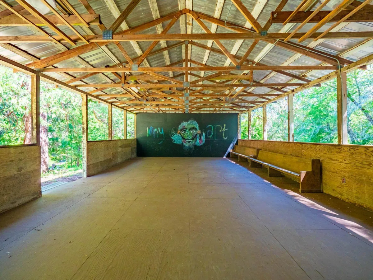 The Amphitheater is a unique gathering space featuring a stage and fire pit, ideal for performances, music, storytelling, or simply gathering around the fire to connect with others. This open-air space is perfect for entertainment, group activities, and celebrating under the stars.